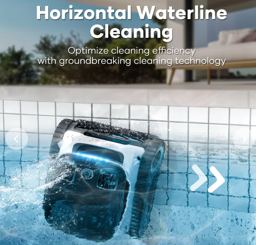 Horizontal Waterline Cleaning - The industry first cordless robotic pool cleaner to feature horizontal waterline cleaning capabilities. The Scuba N1 Pro possesses impeccable flow control and infrared sensors that aid the N1 Pro in maneuvering around your pool, including the obstacles in it.