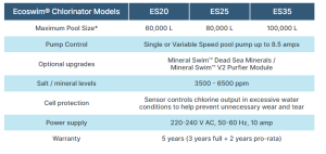 Ecoswim® effectively converts salt or magnesium-rich Dead Sea Minerals in your swimming pool, into pure sanitiser, ensuring that 100% of your pool’s primary sanitation needs are met.